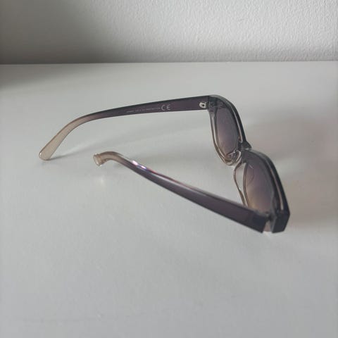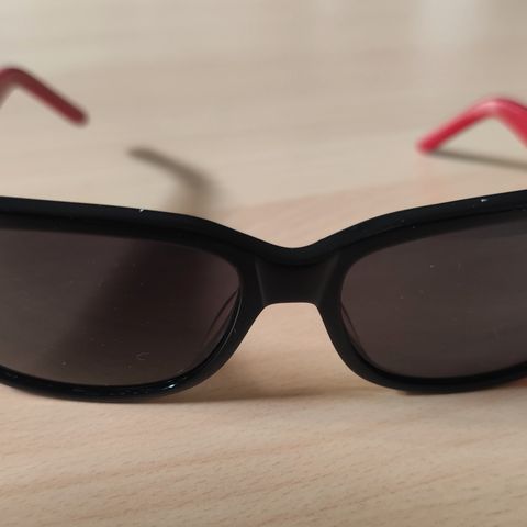 Myydään hyväkuntoiset mustat aurinkolasit violettisävyisillä linsseillä. Kevyt ja mukava muovikehys, naisellinen ja siro cat-eye-henkinen muoto. Linssit tummuvat asteittain (gradient), mikä tekee katselemisesta miellyttävää. Kunto hyvä käytetty, ei halkeamia eikä näkyviä naarmuja linssissä. Mukana pehmeä säilytyspussi