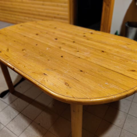 Annetaan 4kpl ruokapöydän tuoleja. Tuolien istuin osat on notkahtaneet ja yksi tuoli rikki näkyy kuvissa
