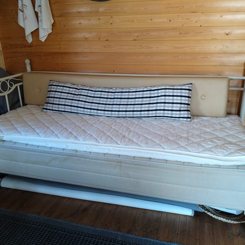 Myydään hyvin vähän käytetty ja hyvänä pidetty 200cm leveä vuodesohva. Selkänojan voi kaata tukijaloille ja istumaosan alla on tavarasäilytystila jonne saa esim tyynyt/peitot/lakanat.