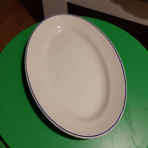 Tarjoiluastia , pituus 24 cm, huomiona kulunut kultaus