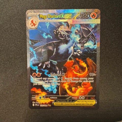 Pokemon Mega Charizard X EX keräilykortti. Suoraan pakasta sleeveihin.