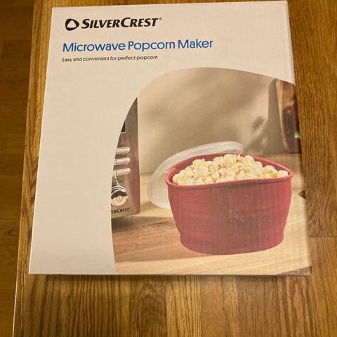Tällä silikonisella astialla voi valmistaa popcorneja mikrossa. Mukana käyttöohje. Saatu lahjaksi, mutta jäänyt käyttämättä, kun ei ole mikroa.