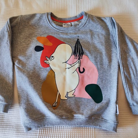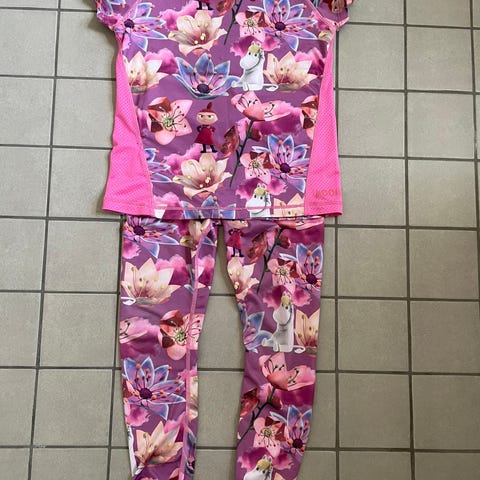 Hyväkuntoiset Moomin merkkiset collegepaita ja housut. Housut ohuenpaa materiaali kuin paita. Housujen polvissa pientä haalentumaa, muuta huomauttamista en kunnosta löydä.