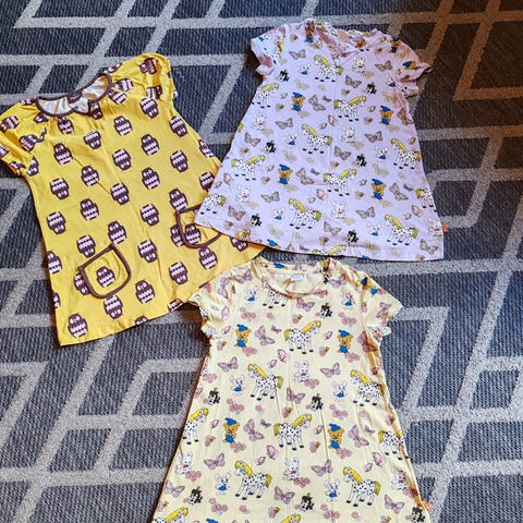 Hyväkuntoiset Bamsen tunikat. Kangas velouria, joka yhä pehmeää. Hyvässä käytetyssä kunnossa. 4€/kpl, kaikki 10€.