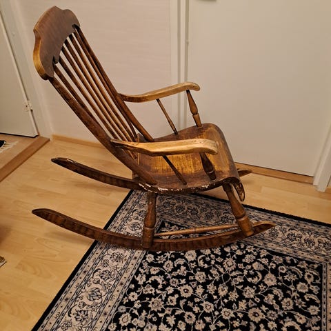 Nätisti patinoima keinutuoli. Vain nouto.