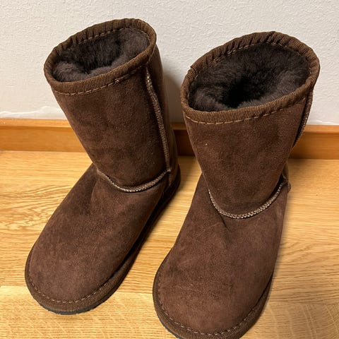 Pari kertaa kovimmilla pakkasilla jalassa olleet täysin uusilta vaikuttavat mustat Zeazoo Dingo paljasjalkakengät. Valmistajan määrittämä koko on 29/30 (näissä ei ole kokomerkintää, mutta koon voi tarkistaa valmistajan taulukosta mittaamalla ulkopohjan), mutta huomaa, että nämä vastaavat sisämitoiltaan yleisesti noin koon pienempää. Jälleenmyyjistä pikkujalat.fi on saanut mitattua sisämitaksi n.18,5 cm, mutta itse saan kenkämitalla vain 18 cm. Saappaat ovat lampaan kelsiturkista, ihanan kevyet, pehmeät ja joustavat kuivan pakkaskelin talvisaappaat. Varsi on melko kapea, joten kengät pysyvät sirommassakin jalassa, paksumpaan pohkeeseen varren voi taittaa lyhyemmäksi.