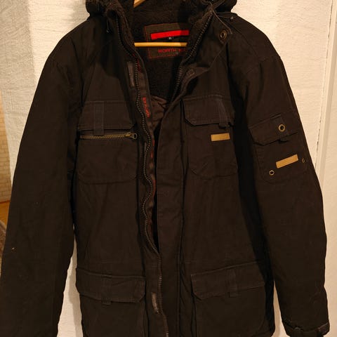 Miesten vintage-parka, hieno lipallinen huppu. Kokolappu valitettavasti leikattu pois, kuvassa 175 cm/s-M-koon naishenkilön päällä, joten arviolta sopii hyvin ainakin M-koon miehelle.