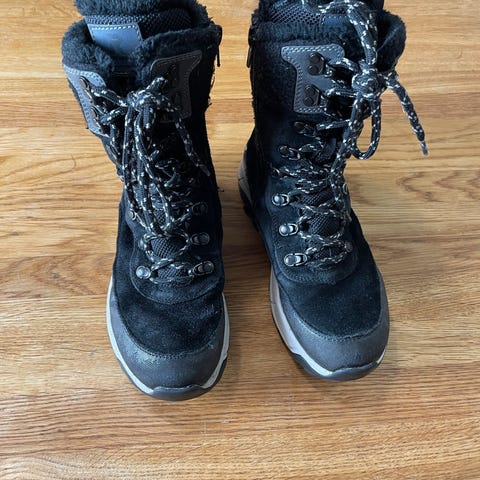 Rieker lasten talvikengät, koko 36, tytöille. Kengissä on karvavuori ja ne on suunniteltu kylmiin olosuhteisiin. Väriltään mustat ja varustettu nauhoilla sekä vetoketjulla helpottamaan pukemista.