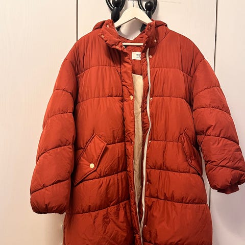 Pieces luonnonvalkoinen tikkitakki, koko S. Käytetty vain pari kertaa, kuin uusi. Pieni jälki vuorissa, katso kuva.