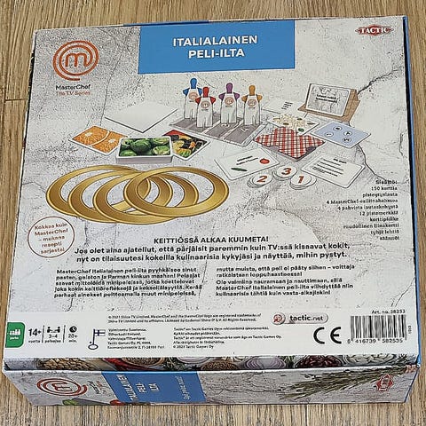 MasterChef Vege Peli-Ilta lautapeli sisältää kasvisruokateemaisia peliosia ja kortteja. Peli soveltuu useammalle pelaajalle ja tarjoaa viihdyttävän tavan tutustua kasvisruokailuun. Pakkaus sisältää pelilaudan, kortit ja tarvittavat pelivälineet.