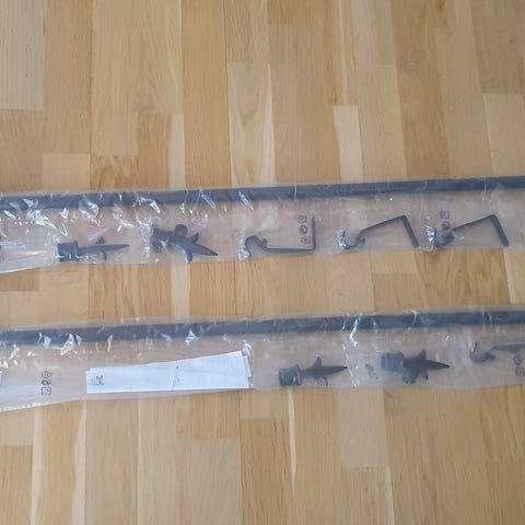 Sekä lisäksi 1x erkkeriin sopiva kisko (kahdella 45 asteen kulmalla) 10€. Kysy tästä mitat erikseen.