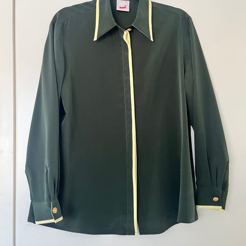 Upea vihreä paita ,edessä napit. 50% puuvilla ja 50% rayon. Erittäin ohut ja miellyttävä materiaali . Uudenveroinen.