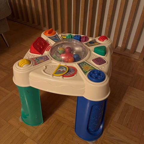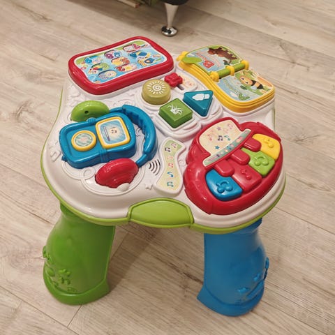 Fisher-Price lasten leikkipöytä, jossa on värikkäitä ja monipuolisia aktiviteetteja. Pöytä sisältää erilaisia leluja ja elementtejä, jotka kehittävät lasten motorisia taitoja ja aistimuksia. Leikkipöytä on valmistettu kestävästä muovista ja soveltuu lasten leikkeihin.