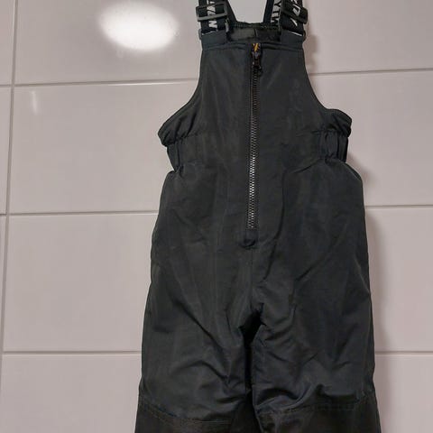 Mustat Kuling toppahousut. Kunto erinomainen, viime talvena olivat meille vähän pitkät ja nyt taas liian lyhyet. Koko 100, mutta sanoisin vastaavan jotain 104/110, edestä vyötäröltä alas n. 69cm ja lahkeet n. 41-42cm.