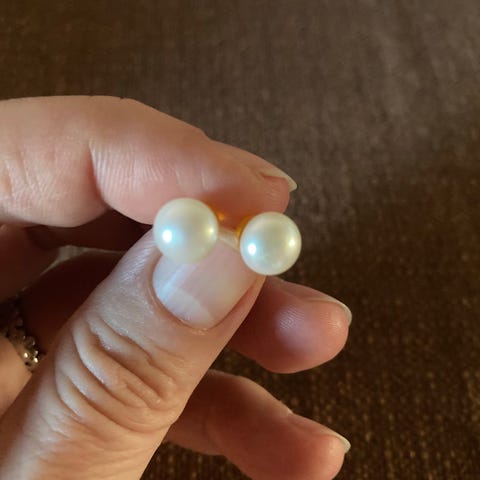 Korusetti helmet. Korvakorut on hopea, helmien koko noin 0,9-1 senttiä.