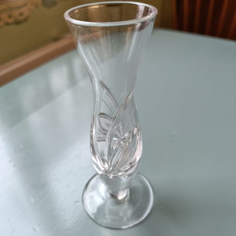 Yksinkertainen vaasi kukille. Korkeus 19cm, leveys 12,5cm.