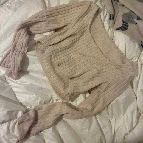 Puuvilla neulepaita. Persikan värinen . Koko S . Puolipitkät hihat ja lyhyt malli.