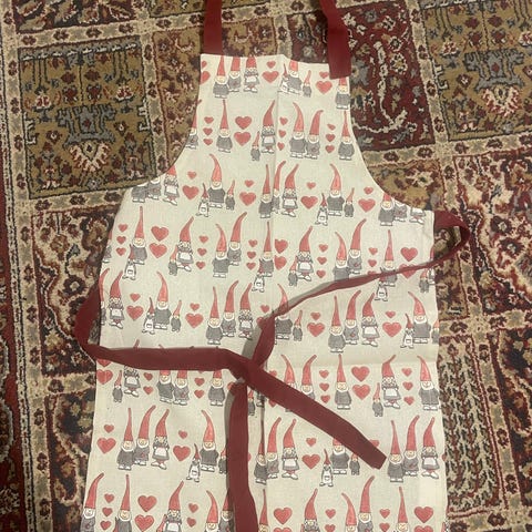 Pienelle apulaiselle essu,joko punaisella tai harmaalla nauhalla,kangas osuuden korkeus 54 cm puuvillaa.Nouto tai postitus.