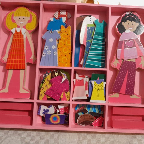 Magneettiset nuket vaihtovaatteilla ja asusteilla.
