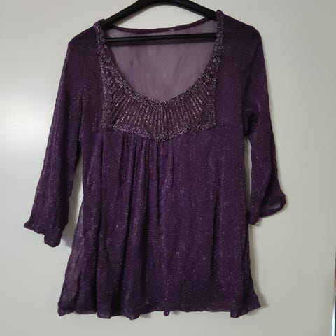 Hupullinen puuvillapaita . 2/3 hihat . Kaunis laventelinvärinen. Koko M
