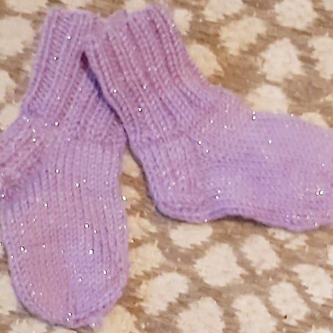 Itse kudotut uudet kauniit villasukat/töppöset lämmittämään talvivauvan pikkuruisia varpaita. Pituus kanta-varvas n.8,5cm.