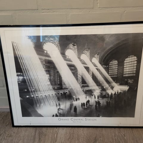 Mustavalkoinen taulu, jossa sumuinen meri-aihe. Koko 52x72cm