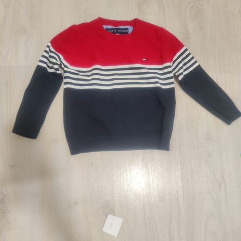 Hilfigerin tummansininen neuletakki. Pieni tahra toisessa hihassa ja väri hieman haalistunut, mutta muuten siistissä kunnossa. Resorit ehjät.