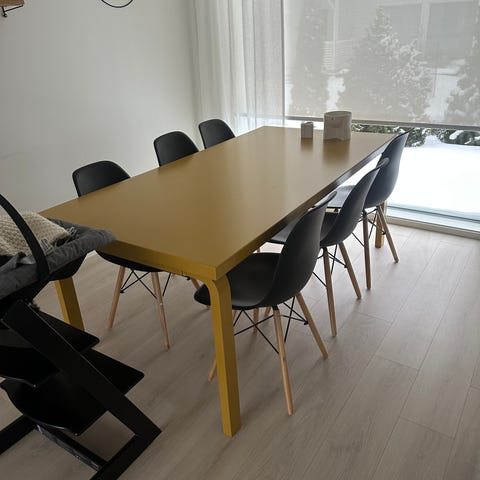 Arte-tyylinen ruokailu ryhmä, hyvässä kunnossa. 4 painottavaa tuolia.