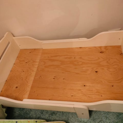 Jatkettava lasten sänky. Leveys 75 cm. Pituus 130-190 cm.