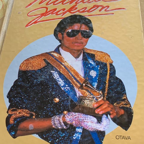 Michael Jacksonin elämästä tai lähinnä urasta kertova kirja vuodelta 1984. Tyydyttävä kunto. Ollut joskus kirjastonkin kokoelmassa (pari leimaa), mutta meille kulkeutunut kirppikseltä.