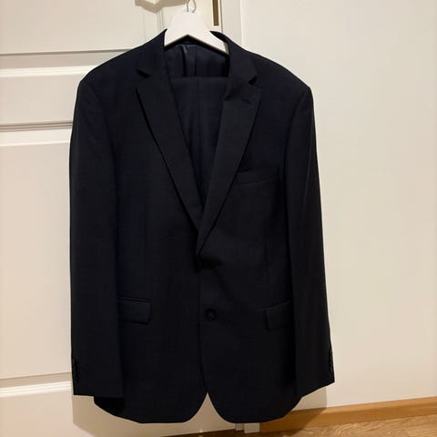 Kuvassa oleva hyväkuntoinen miesten harmaa puku, koko 54.