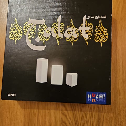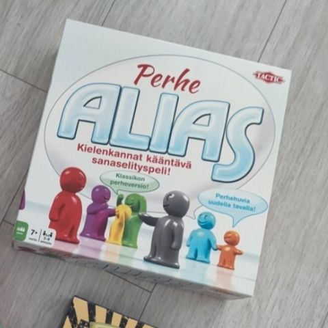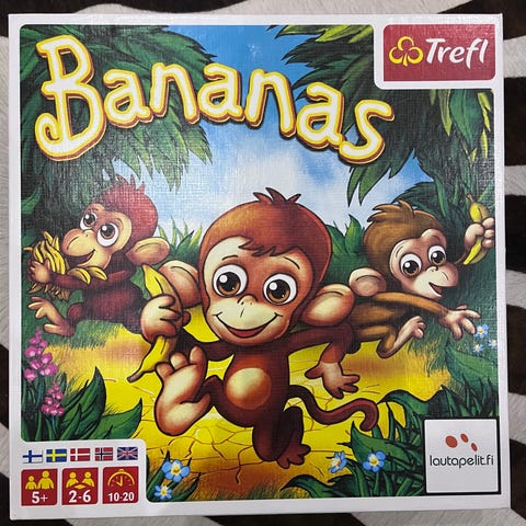 Trefl Mistakos lautapeli, sisältää muoviset punaiset, siniset ja vihreät tuolit pelin osina.