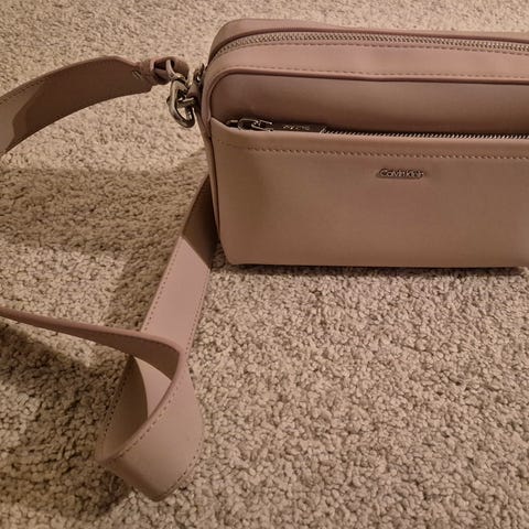 Pari kertaa käytetty musta ns. kameralaukku. Kunto kuin uusi. Tekonahkaa. 2 osaan jaettu ja tilava. Leveä säädettävä kantohihna, jossa valkoinen CK teksti. Hinta 50€ + postit tai nouto Porvoosta