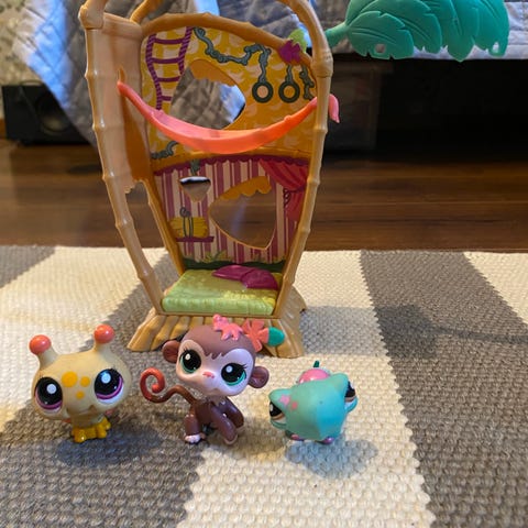 Littlest Pet Shop lasten lelu leikkisetti, sisältää kolme eläinhahmoa ja leikkitalon. Sopii lasten leikkeihin ja keräilyyn.