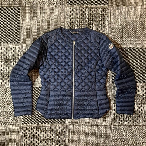 Colmarin kevytuntuvatakki. Koko vastaa parhaiten ehkä pientä M kokoa. Kai-kai 49cm, olka-helma 60-63cm riippuen mittauskohdasta. Käytän itse M, pieni L kokoa ja takki omaan makuun nafti. Käytetty ehkä kahdesti, kuin uusi siis.