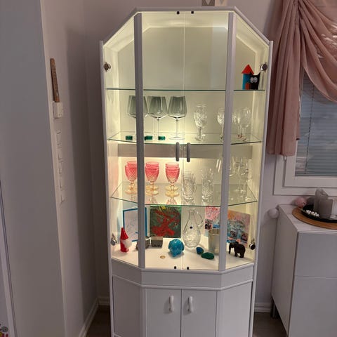 Vanha vitriini lasi ikkunoilla. Kaksi tasoa.