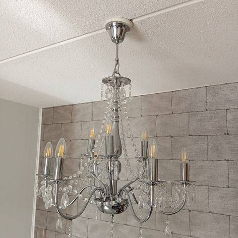 Todella hieno ja tunnelmallinen kattokruunu. Erittäin laadukas. Tanskalainen suunnittelija. Täysin virheetön ja kaikki kivet tallessa, ja toimii.