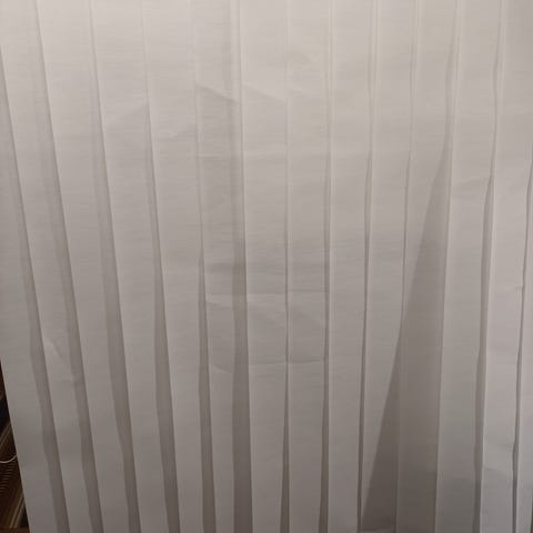 Jyskin lamelliverhot värissä harmaa. Kaksi kokoa: 250x250cm 50€