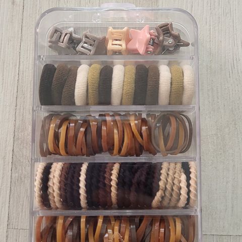 Uusi pompula pakkaus. Sisältää erilaisia pompuloita hiusten kiinnitykseen.