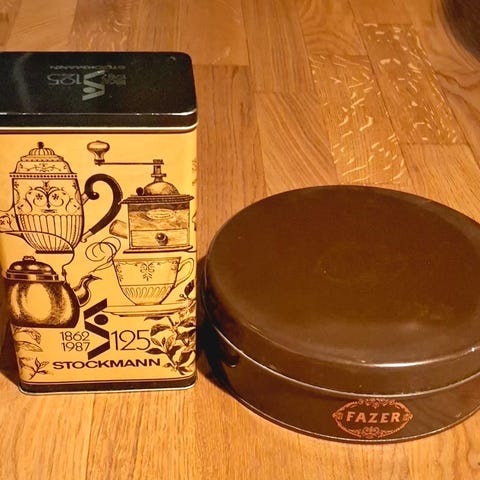 Stockmann merkkisiä uusia metallisia tummanvihreitä purkkeja säilytykseen keittiössä tai muissa tiloissa.3 euroa /kpl.Löytyy enää nämä kolme kappaletta.