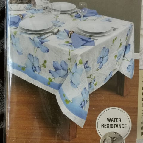 pöytäliinasetti sisältää pöytäliinan koossa noin 150 x 280 cm ja pöytätabletin koossa noin 20 x 280 cm. Värit punainen ja harmaa.