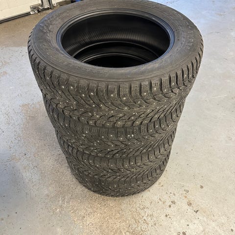 7 mm pintaa joka renkaassa. Nastat keskeltä kuluneet, laidoilta kunnossa. Paistoleima 2720. 130€ sarja.
