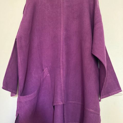 Koko XL, mutta mielestäni kapea lantiosta ja sopii mielestäni parhaiten M-kokoiselle etenkin kun on pellavasta kyse ja saisi olla väljähkö. Kunto hyvä, paristi käytetty.