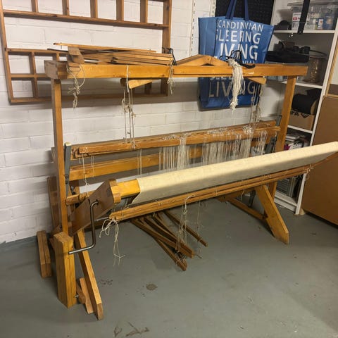 Kaikki kudontaan tarvittavat välineet mukaan. Erilevyisiä/kokoisia pirtoja 6 kpl, pingottimia, sukkuloita, niisiä yms. Mukaan saa myös matonkuteita, lankakudetta räsymattokudetta jne. Hinta 300€/tarjous.