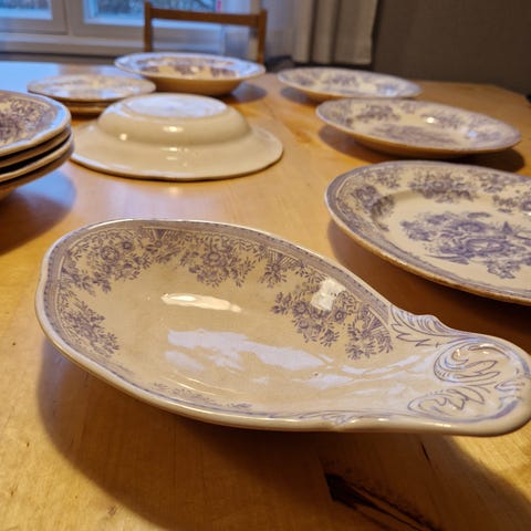 Kulho ulkoa ehjä, neljä pientä kolhua pohjassa (kuva). Kulhossa ajan patinaa!