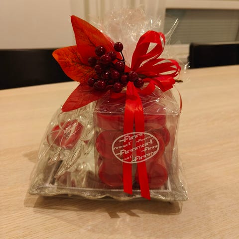 Finnmari lahjapakkaus. Itsellä ei käyttöä, joten seuraavaa ilahduttamaan😊 Settiin kuuluu isompi kynttilä, tuikkukippo+tuikkukynttilä, aluslautanen ja servettejä.