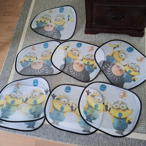 Kaksi InnovaGoods Mesh Car Sun Shade-aurinkosuojaa autoon. Verkkomainen materiaali, joka pingotetaan oven ympärille ja siten peittää ikkunan kokonaan. Tämän kanssa voi myös avata ikkunan. Hetken olleet ikkunassa mutta auton vaihdon myötä jääneet tarpeettomiksi. Ovh 20 €.