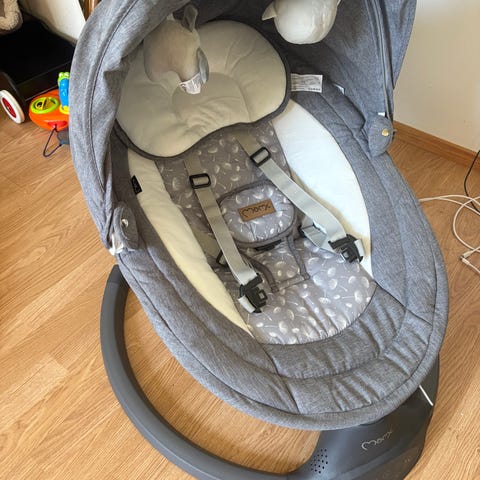 Konepestävä irroitettava päällinen. Selkänojan asentoa saa hieman laskettua, lisäksi saa kiilattua tukijalalla makaavampaan asentoon. Turvavyö on. Kankaassa ei tahroja tai virheitä. Patteria ei olla jouduttu vaihtamaan.