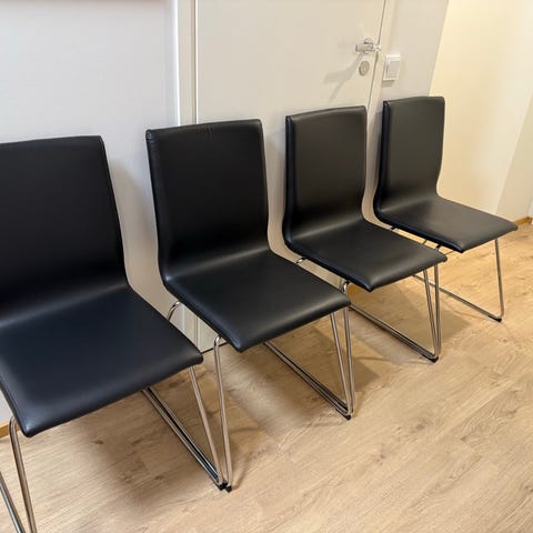 *sama kuin nyt ikean valikoimassa lillanäs. Hyväkuntoiset, muutamassa tuolissa pieni kuluma, mutta pinta ehjä eikä rikki. Hyvät istua ja metallijalkojen pohjassa muovisuojat niin käy mille vain pinnalle.