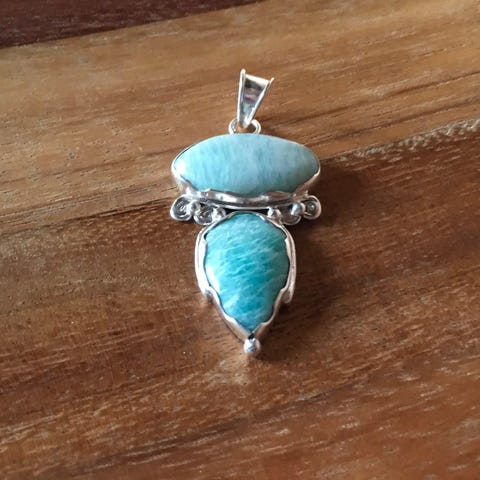 Kaunis akvamariinikristalliriipus. Lenkki 925 hopeaa Kristallin pituus 16mm ja halkaisia n.3mm Korun koko pituus 22mm